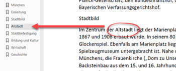Das Lesezeichen ist jetzt angelegt und dient als Sprungmarke zurück zu dieser Textstelle. Sie können auch Worte im Fließtext als Lesezeichen verwenden. Der Lesezeichen-Text muss nicht mit dem Wort aus dem Text oder der Überschrift übereinstimmen. Das Lesezeichen kann direkt beim Erstellen anders benannt werden oder später mit der rechten Maustaste umbenannt werden.