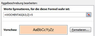 Soweit zufrieden? Dann brauchen wir noch die Hervorhebung der Wochenenden.