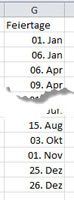 Wenn Sie auch die Feiertage berücksichtigen wollen, brauchen Sie zuerst eine Liste mit den Feiertagen. Dann geben Sie im Argument "Freie Tage" den Bezug zu dieser Liste an.