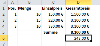 In der nebenstehenden Rechnung soll der Skontobetrag in D6 geschrieben werden.