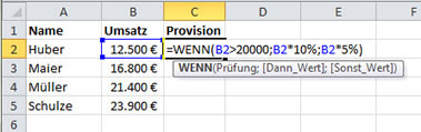 | In Spalte C soll die Provision zum Umsatz errechnet werden. |
