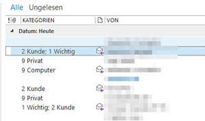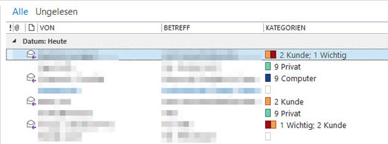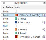 Aus meiner Sicht ist das eindeutig ein Bug. Steht die Spalte "Kategorie" rechts neben einer Spalte im Textformat, werden die Farben gezeigt; steht "Kategorien" rechts neben einer Symbolspalte wie Anlage, Wichtigkeit oder Mailsymbol, verschwinden die Farben.