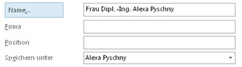 Nach Klick auf OK wird der gesamte Name angezeigt: Anrede mit Tiel, Vorname und Nachname.