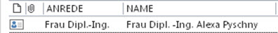 Ich habe in einer Tabellen-Ansicht die Spalten "Anrede" und "Name" hinzugefügt. |
