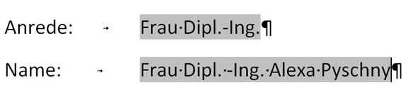 Hier ist der Unterschied ebenfalls zu sehen: Entweder ist das Feld "Anrede" korrekt oder das Feld "Name". Löscht man in der Spalte "Name" den Leerschritt, erscheint im Feld "Anrede" und umgekehrt.