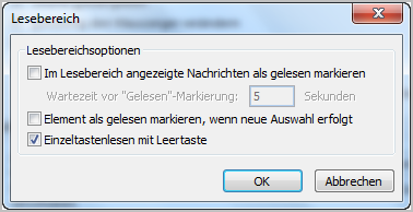 Eine Mail, die im Lesebereich einige Sekunden angezeigt wird, gilt normalerweise als gelesen. Das ist nicht immer erwünscht. Wenn ich nur schnell durch die Mails rolle und sie sekundenlang im Lesebereich erscheinen, sollen sie nicht unbedingt sofort "Gelesen" sein. Sie können das steuern.