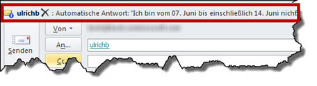 Mit dem Löschen-Symbol neben dem Namen des Empfängers (das X neben ulrichb) kann der Empfänger entfernt werden. Das ist sinnvoll, wenn aus einem Verteiler ein Kollege mit einer Abwesennotiz signalisiert, dass er längere Zeit in Urlaub ist oder seine Mails aus anderen Gründen nicht lesen kann.