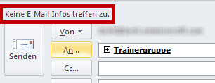 Die Informationsleiste oberhalb des Absenderkontos (Von) wird wenige Sekunden nach der Auswahl des Adressaten eingeblendet. Angezeigt wird die Abwesennachricht, die man auch erhalten würde, wenn man die Mail an diesen Adressaten senden würde.