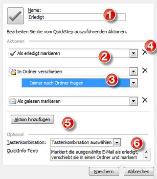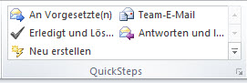Sie finden Sie im Posteingang unter "Start / Quicksteps". Sie können die Standard-Quicksteps ändern oder löschen und eigene erstellen.