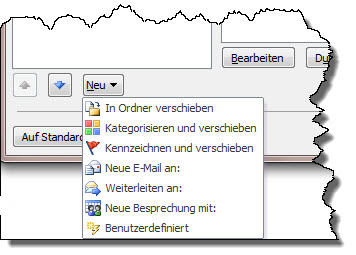 Wählen Sie zuerst "Neu / Benutzerdefiniert". Suchen Sie bei den Aktionen aus "Antworten" oder "Allen antworten". Klicken Sie wieder auf den blauen Link "Optionen anzeigen".