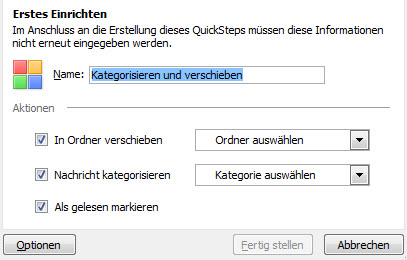 Kategorie vergeben, als gelesen markieren und in einen Ordner verschieben