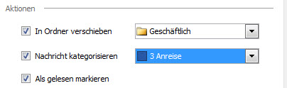 Eine eingegangene Mail soll automatisch eine Kategorie bekommen, als gelesen gekennzeichnet werden und in einen bestimmten Ordner verschoben werden.