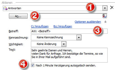Mail mit vorgegebenem Text beantworten und eine Aufgabe erstellen