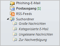 Klappen Sie die Suchordner auf - in der Regel sind Große Nachrichten, Kategorisierte E-Mails und Zur Nachverfolgung dabei.