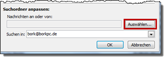 Um einen eigenen Suchordner anzulegen, klicken Sie mit der rechten Maustaste auf "Suchordner". Wählen Sie "Neuer Suchordner". Entweder wählen Sie aus den fertigen Möglichkeiten aus oder Sie passen sich einen der vorgegebenen Ordner an. Beispielsweise "Nachrichten von oder an bestimmte Personen". Markieren Sie diesen Suchordnernamen. |