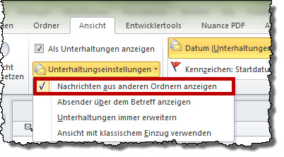Wenn Ihr Konto ein Exchange-Konto ist (was bei einer Firmeninstallation üblich ist), haben Sie möglicherweise einen Befehl mehr: Nachrichten aus anderen Ordnern anzeigen.