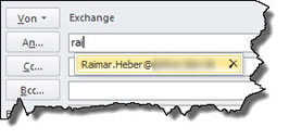 Sobald Sie in einer Mail beginnen, einen bereits bekannten Adressaten einzutippen, schlägt Outlook Ihnen die Mailanschrift vor. In den meisten Fällen können Sie den Nachnamen verwenden. Leider nicht immer - dann müssen Sie den Kontakt nacharbeiten.