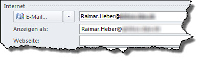 Gespeichert wird dabei ledglich die Mailadresse. Sie wird als E-Mail und als "Anzeigen als"-Feld gespeichert.