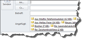 Die Mails werden als Anhang an eine neue Mail angehängt. Sie müssen noch den neuen Adressaten eintragen. | ![]() |
