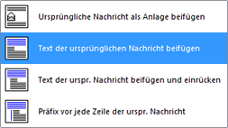 Der Text der Originalnachricht wird standardmäßig unter der neuen Nachricht eingefügt. Sie können aber auch als Standard einstellen, dass weitergeleitete Mails immer als Anhang eingefügt werden oder dass der zitierte Text immer eingerückt ist.