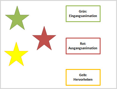 Probieren Sie es aus: Starten Sie die Bildschirmpräsentation und klicken Sie zuerst auf den gelben Stern - es erscheint die gelbe Erklärungsbox. Klicken Sie dann entweder den roten oder grünen Stern an.