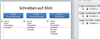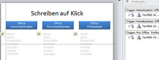 Normalerweise laufen Animationen "als Teil der Klickreihenfolge" - das bedeutet, dass für jedes Element auf der Folie genau festgelegt, mit dem wievielten Mausklick es aufgerufen wird.