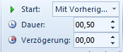 Auf dem ersten Register "Effekt" finden Sie unter "Text animieren" die Wahl zwischen "Alle gleichzeitig", "Wortweise" und "Zeichenweise". Für die letzten beiden können Sie die Verzögerung zwischen den Worten bzw. Zeichen einstellen.