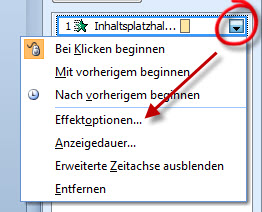 Klicken Sie im Animationsbereich auf den Auswahlpfeil neben der Animation und wählen Sie "Effektoptionen". |