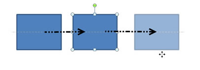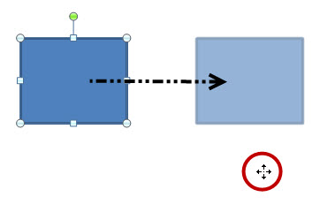 Gerade verschieben UMSCHALT gedrückt halten und das Element dann nach links/rechts oder nach oben/unten verschieben. Sie können dabei ruhig mit der Maus ein bisschen "wackeln" - das Element wird gerade daneben platziert. Rechts sehen Sie, dass ich mit dem Mauszeiger etwas unterhalb stehe. |