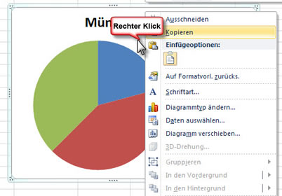 Kopieren Sie das Diagramm aus Excel. Es ist dabei egal, ob das Diagramm auf einem eigenen Blatt platziert ist oder als Objekt auf der Tabelle, ist dabei egal.