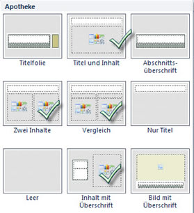Erstellen Sie eine neue Folie mit einem Platzhalter - damit erreichen Sie, dass das Diagramm exakt die gleiche Größe wie die Textplatzhalter erhalten.
