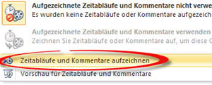 Klicken Sie auf "Aufgezeichnete Zeitabläufe und Kommentare nicht verwenden", um die Auswahl aufzuklappen.