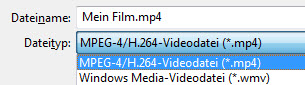| MP4 steht außer bei "DVD brennen" in allen anderen Formaten zur Verfügung. | ![]() |