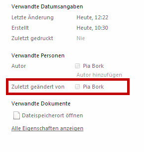 - Jeder, der die Datei zuletzt gespeichert hat, wird als Autor für alle Änderungen aufgeführt. Das gilt sogar dann, wenn vor dem Speichern nichts an der Datei geändert wurde!