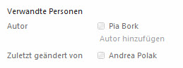 War die letzte Speicherung durch den Autor "Andrea Polak", werden alle Änderungen für "Andere Polak" aufgelistet.