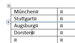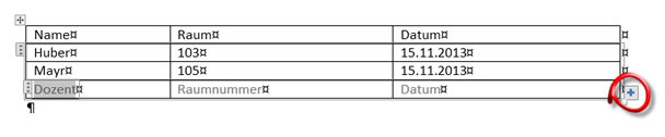 TabellenIn einer Tabelle kann mit einem Plus-Symbol schnell eine neue Zeile oder neue Spalte eingefügt werden. Das Symbol blendet sich ein, sobald man an den linken oder oberen Rand auf einen der Begrenzer zeigt. |