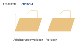 Wurde ein Arbeitsgruppenpfad eingetragen, ändert sich "Personal" zu "Custom". Mit Klick auf "Custom" werden dann die beiden Ordner für die Arbeitsgruppenvorlagen und die (persönlichen) Vorlagen angezeigt.