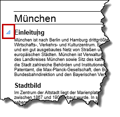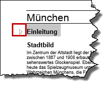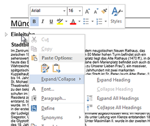 Überschriften reduzierenWas wir bisher nur aus der Gliederungsansicht kannten, geht jetzt im Dokument. Überschriften warten mit einem kleinen Dreieck-Symbol auf, mit dem sich die Texte reduzieren lassen. |