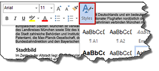 Formatvorlagen in der Mini-symbolleisteDie Minisymbolleiste wurde ergänzt um die Galerie der Formatvorlagen. |