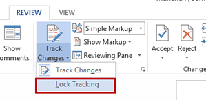 ÜberarbeitenmodusMit "Lock Tracking" kann ein Passwort vergeben werden, das benötigt wird, um den Überarbeitenmodus auszuschalten. |