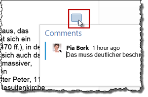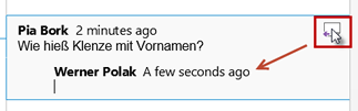 Das Symbol rechts außen im Kommentar dient dazu, im Kommentar einen weiteren Kommentar unterzubringen. Rechts steht zuerst mein Kommentar, darunter dann der zweite von einem anderen Bearbeiter. |