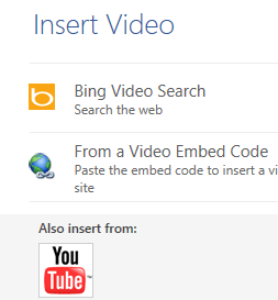 Online VideoMit "Insert / Online Video" können Videos von Bing, You Tube oder aus anderen Quellen hinzufügt werden. |