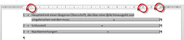 Jetzt liegen beide Tab-Stopps zwar noch im Randbereich, aber im erlaubten Absatzbereich und können sowohl angesprungen als auch verwendet werden!
