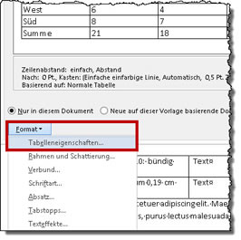 Klicken Sie im Dialog auf "Format / Tabelleneigenschaften".