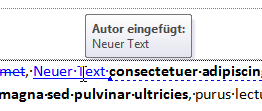 | Die gleiche Stelle wie oben wird jetzt mit "Autor eingefügt" gekennzeichnet - Name und Datum sind verschwunden. | ![]() |