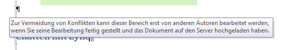 Wenn der andere Bearbeiter längere Texte tippt, wird nach einigen Sekunden auch angezeigt, wer da gerade an dieser Textstelle arbeitet.