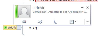 Um über die gemeinsame Textarbeit hinaus zu kommunizieren, kann man sich Sofortnachrichten über Lync schicken (oder ein anderes Instant Messaging System). Wenn die technischen Voraussetzungen stimmen, kann man auch telefonieren.