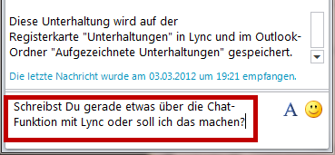 Das Lync-Fenster selber hat auch noch eine Möglichkeit, zu chatten.
