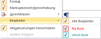 Unter "Überprüfen / Markup anzeigen / Bearbeiter" sind jetzt beide Namen zu sehen. |