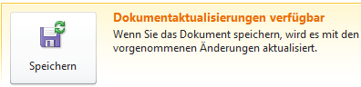 Ulrich erhält den Hinweis, dass ein Update vorliegt und sieht nach dem Speichern diesen Kommentar. Am rechten Rand der Statuszeile wird angezeigt, dass Änderungen vorhanden sind, wenn die Option "Verfügbare Dokumentaktualisierungen" aktiviert ist.